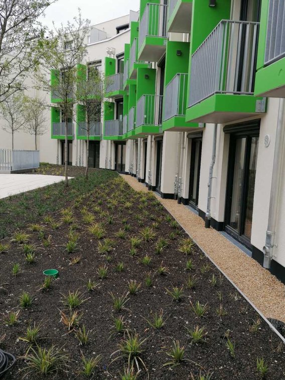 Open-Air-Lounges, Slackline, Boulderwand, Beachvolleyballfeld und Tischtennis im Aussenbereich, kleine Selbstversorgergärten auf den zugänglichen Dachgärten, Fitnessbereich im Gebäude.