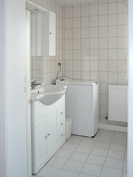 Im Bad steht allen Bewohnern eine Waschmaschine zur Verfügung.