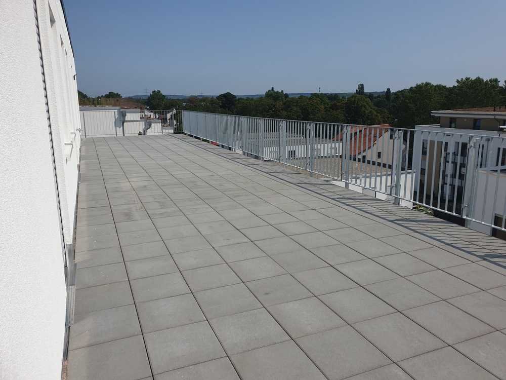 Absolutes Highlight ist die große Terrasse, die über die gesamte Breite des Penthouses verläuft und sowohl vom Wohnzimmer als auch vom Schlafzimmer, dem Masterbad und der Diele zu betreten ist.