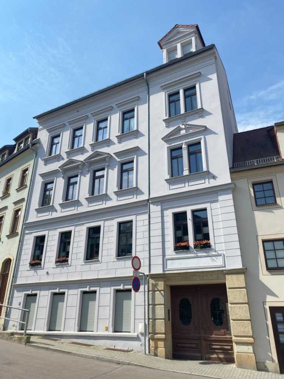 Ab dem 15. Sep 2025 ist die schöne Wohnung im 3. OG bezugsfertig. Zwei attraktive Zimmer, eine Wohnküche, ein separates WC und ein kleines Bad sind jeweils vom zentralen Flur erreichbar. Der Balkon nach Süd-West hat Terassencharakter und erlaubt im 3.OG einen weiten Blick über die Altstadt sowie ins grüne Triebischtal.