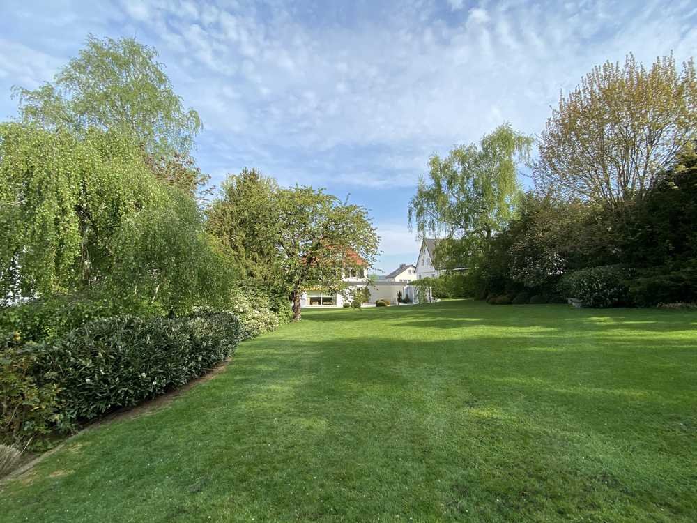 Das großzügige Wohnzimmer mit bibliotheksartigem Charakter zeichnet sich durch einen offenen Kamin und den uneingeschränkten Blick in den wundervollen Garten aus, der nach Südwesten ausgerichtet ist. In den Sommermonaten bietet eine Markise Schutz vor Sonneneinstrahlung und Wärme.