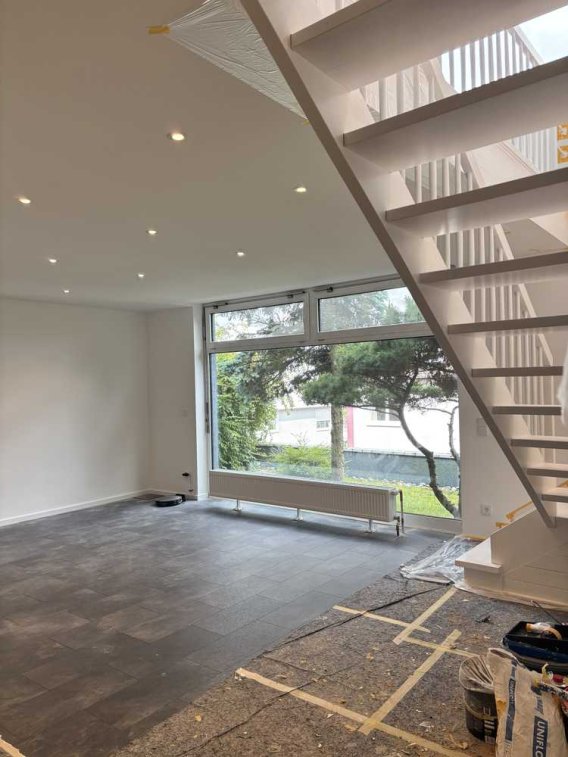 Haus-Charakter, die lichtdurchfluteten Räume, hochwertige Materialien und den umlaufenden Privatgarten bietet sie ein Wohngefühl wie im eigenen Haus – perfekt für Paare oder Familien. Die Wohnung verfügt über fünf helle Zimmer, drei praktische Abstellräume, zwei Tageslichtbäder, ein separates WC, zwei Balkone eine große private Terrasse und einen Kellerraum. Eine Einbauküche ist nicht vorhanden, auf Wunsch kann jedoch eine gebrauchte Bulthaup-Küche inkl. Geräte gestellt werden. Der großzügige Garten mit Terrasse zur alleinigen Nutzung schafft Raum für Erholung, Spiel oder gesellige Abende im Freien. Zur Wohnung gehört ein gut nutzbarer Außenstellplatz. Zwei weitere Garagen bieten Platz für kleinere PKW, Fahrräder oder Sportgeräte. Ein zusätzlicher Außenstellplatz ist nur eingeschränkt nutzbar. Vier öffentliche Parkplätze befinden sich direkt gegenüber der Immobilie. Die Wohnung wurde 2025 saniert und ist ab dem 1. August 2025 bezugsfrei.