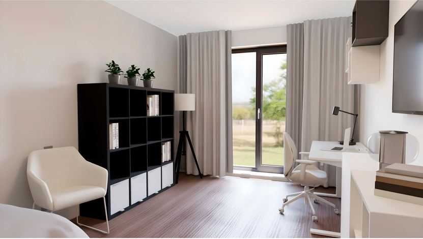 Das angebotene und vollausgestattete WG-Zimmer Nr. N6b befindet sich auf der 3. Etage des Neubaus und verfügt über ca. 29 m² Wohnfläche.