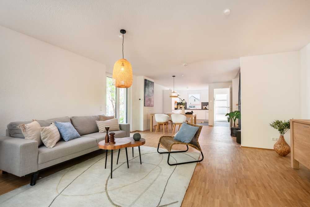 Die exklusiven Immobilien „Am Mühlbach“ bieten Ihnen ein modernes Wohnerlebnis auf höchstem Niveau. Hochwertiger Eichenparkettboden und eine angenehme Fußbodenheizung sorgen für ein behagliches Wohnklima. Die teils vorhandenen Einbauküchen fügen sich harmonisch in das moderne Raumkonzept mit flexiblen Gestaltungsmöglichkeiten ein. Große Fenster mit elektrischen Rollläden durchfluten die Räume mit Licht und bieten gleichzeitig Sicherheit sowie Komfort. Vor der Haustür wartet Ihr persönlicher Parkplatz und die Sichtschutzwände bewahren auf den großzügigen Terrassen und Gärten Ihre Privatsphäre – perfekt für Kinder und eine entspannte Familienzeit. Zusätzlich profitieren Sie von der quartierseigenen Heizungsanlage und den Photovoltaikanlagen, die Ihnen eine nachhaltige und kosteneffiziente Energieversorgung sichern.