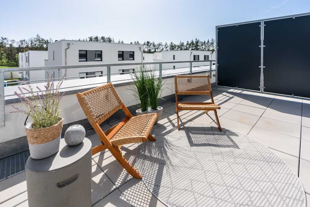 Die exklusiven Immobilien „Am Mühlbach“ bieten Ihnen ein modernes Wohnerlebnis auf höchstem Niveau. Hochwertiger Eichenparkettboden und eine angenehme Fußbodenheizung sorgen für ein behagliches Wohnklima. Die teils vorhandenen Einbauküchen fügen sich harmonisch in das moderne Raumkonzept mit flexiblen Gestaltungsmöglichkeiten ein. Große Fenster mit elektrischen Rollläden durchfluten die Räume mit Licht und bieten gleichzeitig Sicherheit sowie Komfort. Vor der Haustür wartet Ihr persönlicher Parkplatz und die Sichtschutzwände bewahren auf den großzügigen Terrassen und Gärten Ihre Privatsphäre – perfekt für Kinder und eine entspannte Familienzeit. Zusätzlich profitieren Sie von der quartierseigenen Heizungsanlage und den Photovoltaikanlagen, die Ihnen eine nachhaltige und kosteneffiziente Energieversorgung sichern.