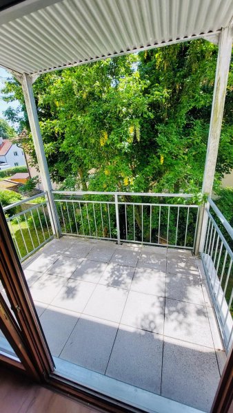 Der Balkon lässt aufgrund seiner ruhigen straßenabseits vorliegenden Lage umgeben von großen Bäumen im Grünen zum Verweilen und Entspannen ein - Platz nehmen und Urlaubsfeeling genießen.