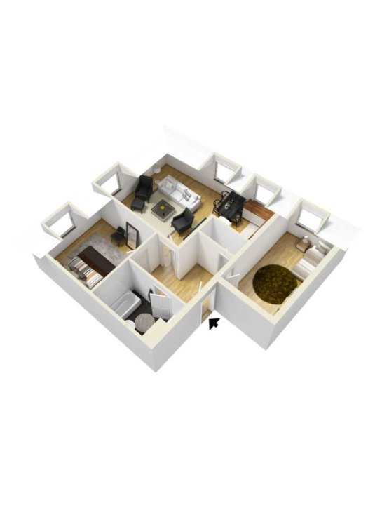 Sie verfügt über einen freundlichen Wohn-und Essbereich, Küche, ein Schlaf- und ein Kinderzimmer. Das Badezimmer ist mit Badewanne und Dusche ausgestattet. Ein Waschmaschinenanschluss ist im Bad vorhanden. In der Wohnung befindet sich ein Abstellraum, ein weiterer Abstellraum steht im Untergeschoss zur Verfügung.