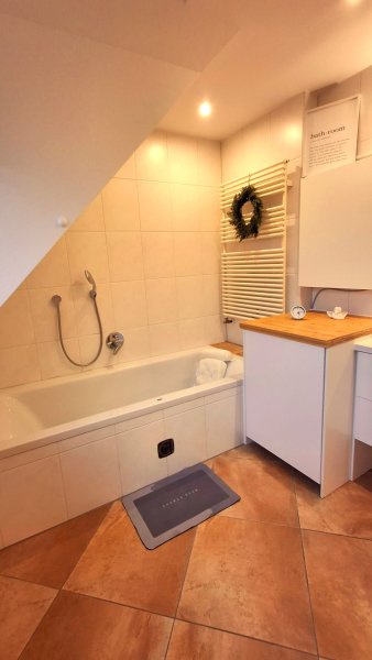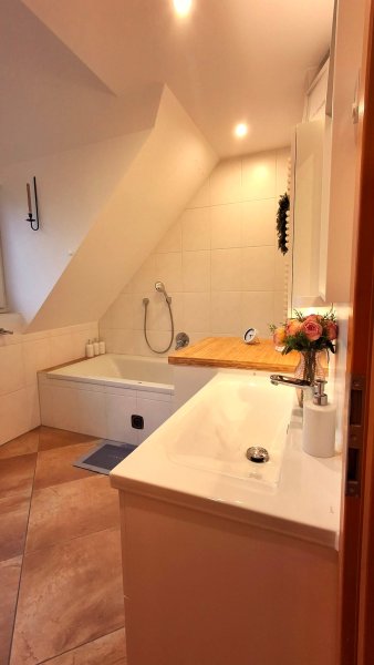 • Sehr geräumiges Badezimmer mit Waschmaschine.