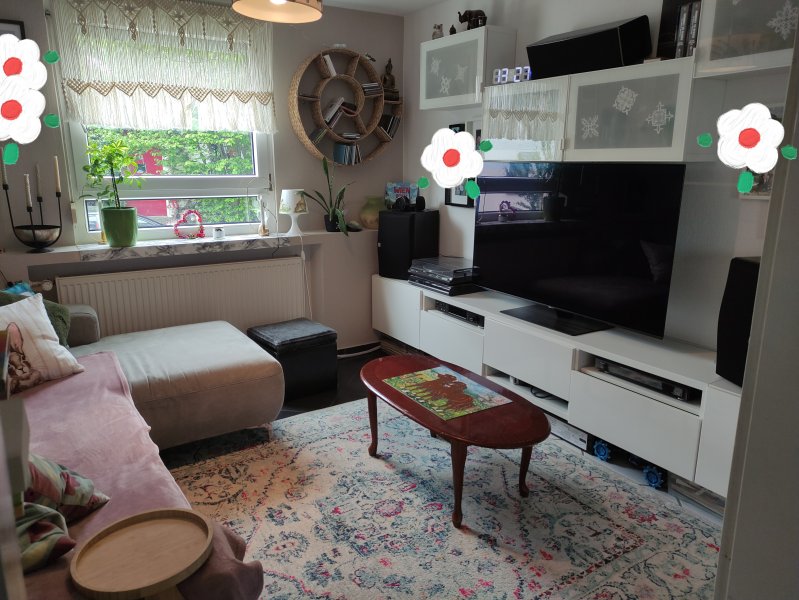Das Haus ist teilmöbliert (z.B. Sitzgelegenheit in der Essküche und Wohnzimmer, ausgestattete Küche, Waschmaschine und Spülmaschine) und Weiteres. Das zu vermietende Zimmer ist 23 m2 groß, ist südlich ausgerichtet und teilmöbliert mit einem großen begehbaren Kleiderschrank, einem separaten Büro und einer eigenen Toilette. Bei Bedarf kann über weitere Möbelstücke in Absprache und je nach Verfügbarkeit gesprochen werden. Es liegt im 2. OG des RMH. Außerdem werden gemeinschaftlich genutzt: Die Essküche, das Wohnzimmer (beides im EG) und das Bad mit Dusche und Wanne (1. OG). Unmittelbar an der Hauptstraße ist eine Bushaltestelle.