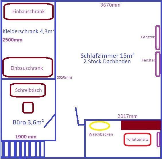 großzügiges Studentenzimmer mit Büro, begehbarem Kleiderschrank und eigener Toilette zu vermieten
