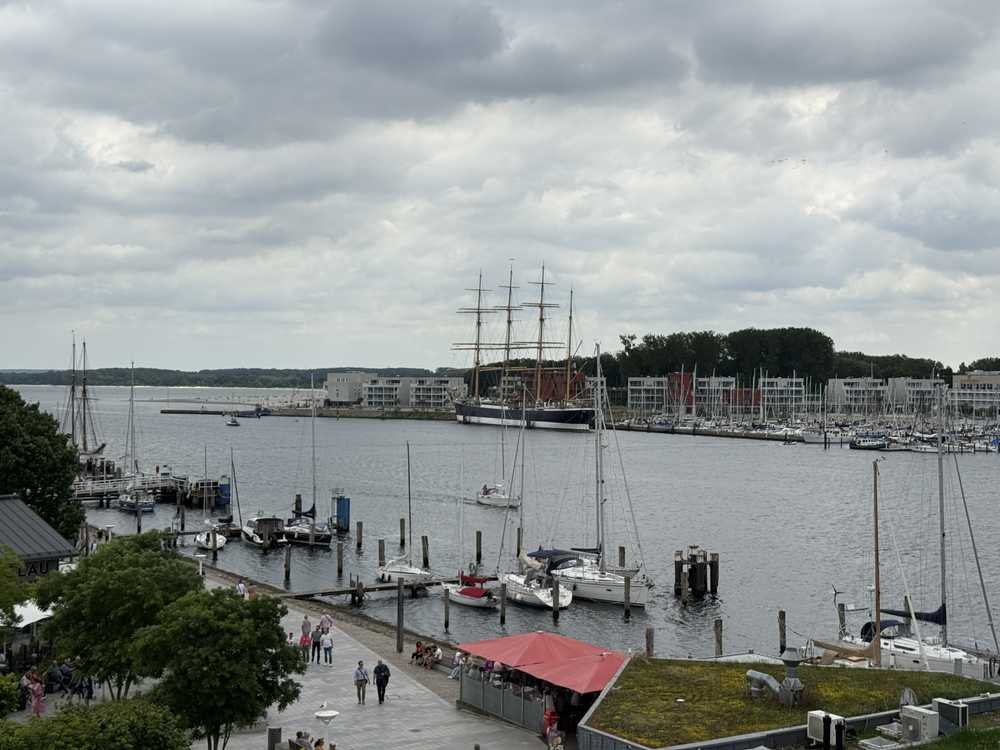25qm Balkon mit traumhaftem Blick von der Ostsee/Mole bis zum Skandinavienkai auf die Trave, vorbeifahrende Schiffe und Passat