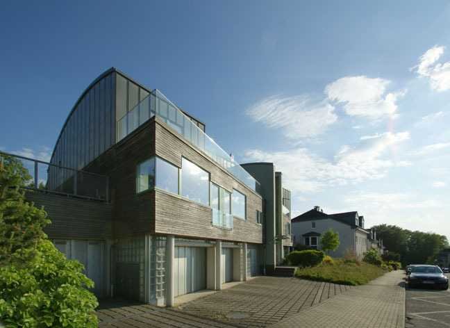 Super helle Wohnung, ausgefallene avantgarde Architektur, etwas für den modernen Geschmack, helles Glas-Treppenhaus mit Sichtbeton, Nebenkosten für 1 Personen (inkl. Heizung, Kabel TV, Gärtner, etc.), Abrechnung der Heizung nach Verbrauch. Waschküche mit Anschluss für Trockner und Waschmaschine.