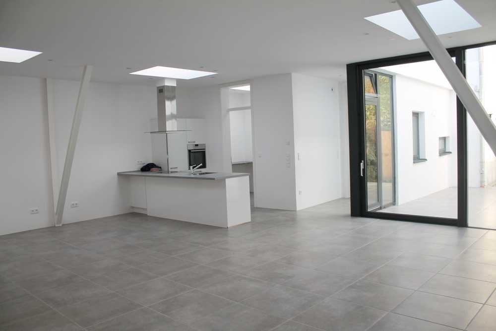 Ebenerdiger Neubau mit Flachdach - 65 qm Atelierraum mit Kücheninsel und angeschlossenem Versorgungsraum - plus 35 qm adaptiertes Apartment - bodentiefes Terrassenfenster - hohe Decken mit motorischen Lichtkuppeln - integriertes Lichtsystem - betongraue Fliesen innen und außen - Fußbodenheizung - Datenleitungen - Versorgungs- und Waschraum - moderne Aluminiumfenster - großes Bad mit begehbarer Regendusche - Handtuchheizung - beleuchteter Spiegelschrank - Sicherheitshaustür - Schließanlage - 25 qm Innenhof/Terrasse - separates Zugangstor - Energieausweis - (1.358 € kalt plus HK/BK 320 € p.M. = 1.678 € warm)