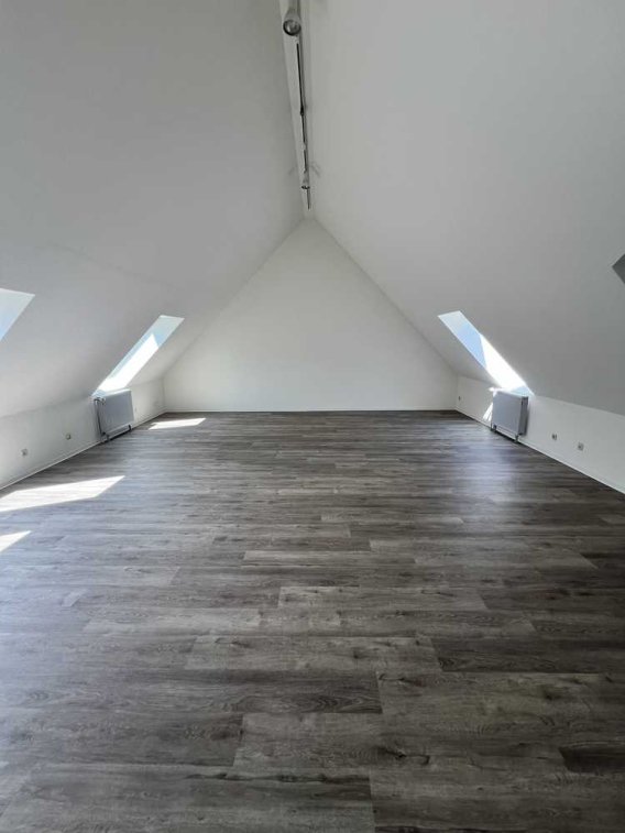 Die großzügig geschnittene Mietfläche erstreckt sich über zwei Ebenen und überzeugt durch ihren offenen Grundriss, hohe Decken im Dachgeschoss, sowie helle Fensterfronten.