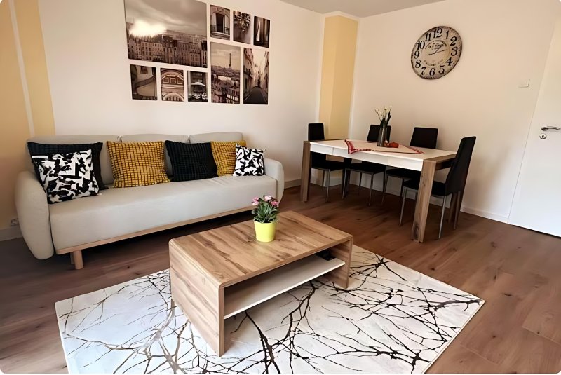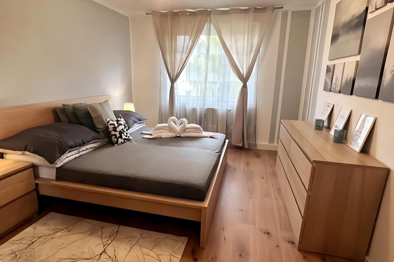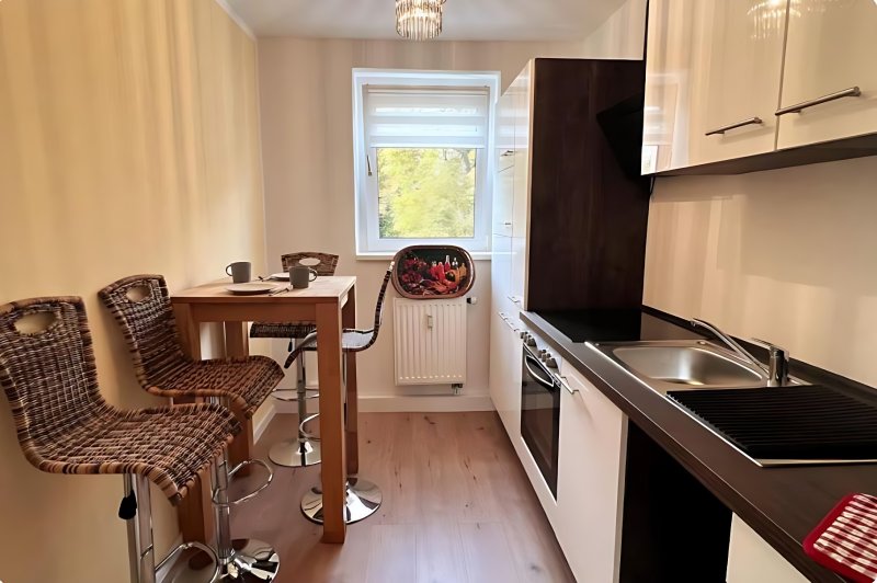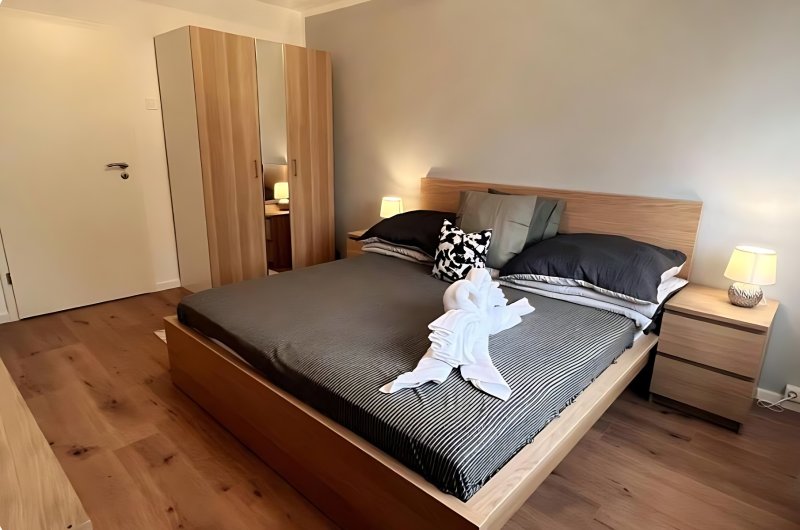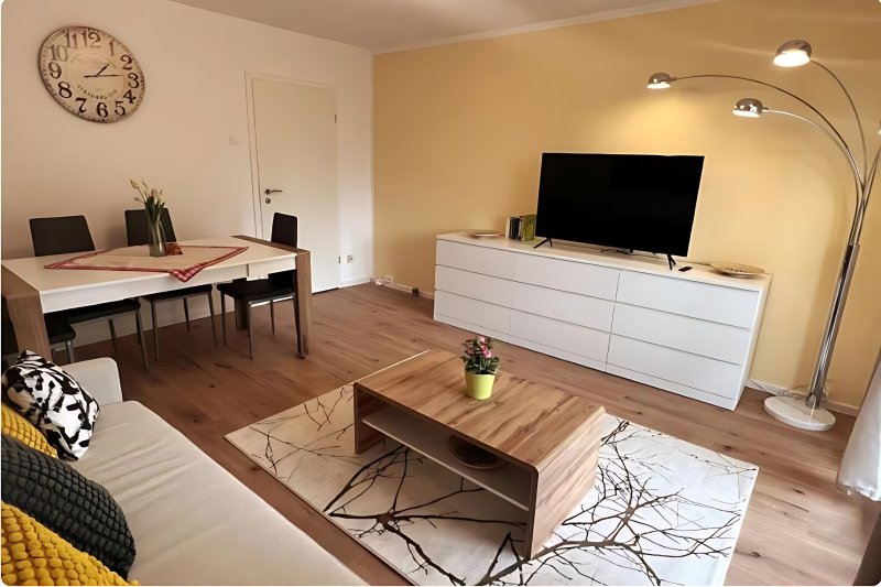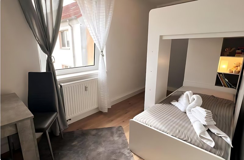 Himmel über Frankfurt in Frankfurt bietet eine geräumige Wohnung mit zwei Schlafzimmern und einem Wohnzimmer. Das Anwesen verfügt über Familienzimmer voll möbliert.