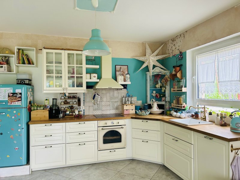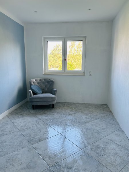 Das Zimmer (13m²) ist eins von 3 Schlafzimmern in einem 100 m² Einfamilienhaus mit großer Wohnküche, 2 Badezimmern, einer Terasse und einem Garten.