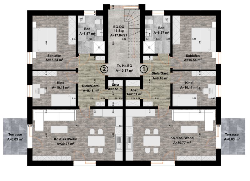 Zwei autarke Erdgeschosswohnungen mit durchdachtem Grundriss