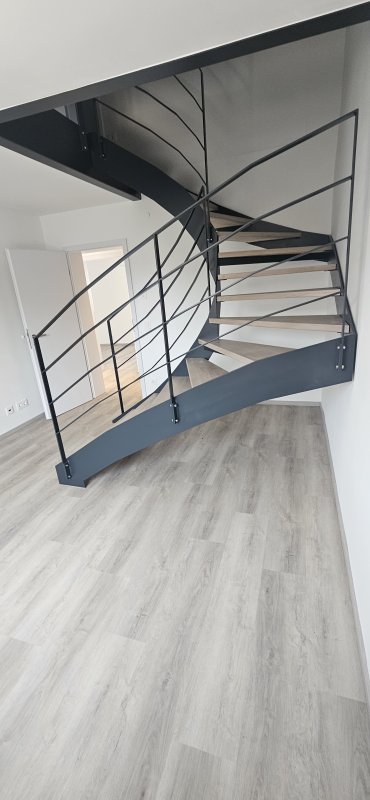 Flur, Badezimmer, Wohnküche (OHNE Einbauküche), Wohnzimmer und Maisonettezimmer mit Treppenaufgang in Etage 2 und als Ankleide oder Home-Office nutzbar (nicht als Kinderzimmer nutzbar).