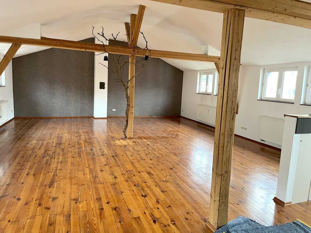 2. Die Kombination aus der rustikalen Holzbalkenkonstruktion und den hellen Flächen schafft ein spannendes und vielseitig nutzbares Ambiente