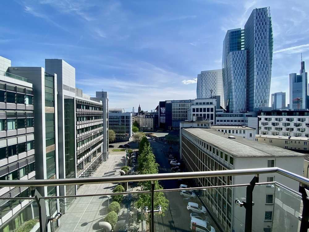 The Skylight in the heart of Frankfurt. Completely renovated, fully furnished apartment, south-facing, with a skyline view, balcony, underground parking and concierge service.