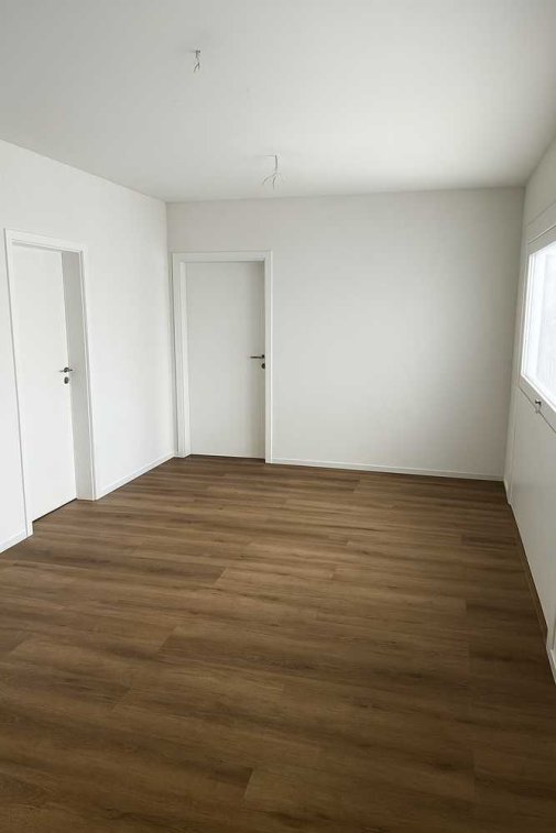 Die Wohnung verfügt über insgesamt vier Zimmer. Der offene Grundriss schafft eine luftige und einladende Atmosphäre. Das Wohnzimmer bietet ausreichend Platz für gemütliche Abende und führt direkt auf den Balkon. Die Küche ist modern gestaltet und mit hochwertigen Geräten ausgestattet. Das Schlafzimmer bietet genug Raum für ein großes Bett und bietet genügend Stauraum.