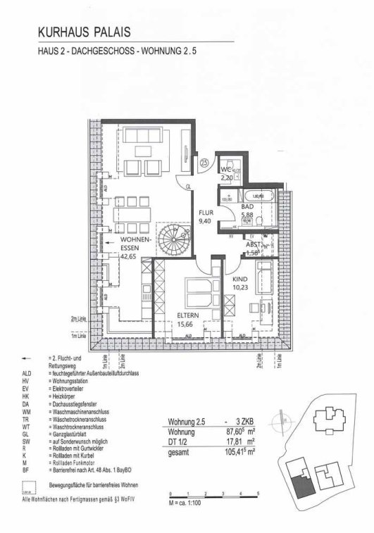 Auf dem Grundstück am Klausenberg 11/Ecke Panoramaweg befindet sich das neue Kurhaus Palais. Es besteht aus 3 Häusern mit Tiefgaragenplätzen auf einem großzügigen Grundstück mit tlw. altem Baumbestand. Zur Vermietung steht die Wohnung im DG mit einer wunderbaren Dachterrasse mit Blick über ganz Göggingen und bis zu den westlichen Wäldern. 1 TG-Stellplatz steht zur Verfügung. Bei der Ausstattung der Wohnung wurde höchster Wert auf Qualität und Wohnkomfort gelegt.