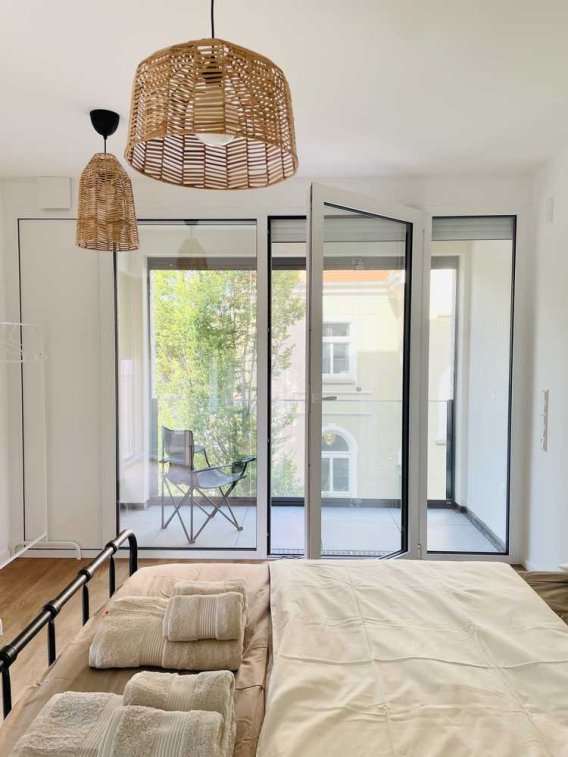- Bettgestell, EMMA-Matratze, stilvolle Leuchten