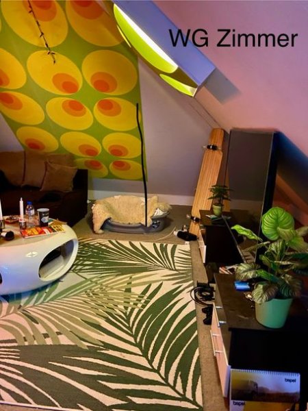 Über das WG Zimmer ist zu sagen, dass es zwar unter dem Giebel ist und daher schrägen hat,