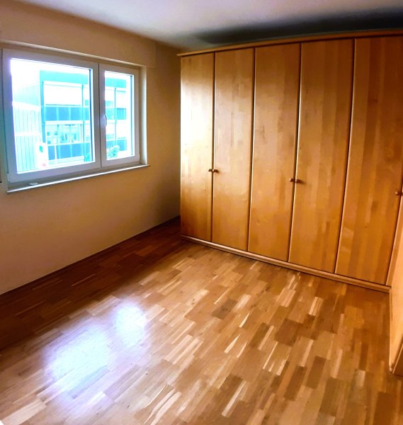 Im Obergeschoss finden sich drei Schlafzimmer, eines davon mit praktischem Einbauschrank, der viel Stauraum bietet. Die Räume sind flexibel nutzbar – als Schlaf-, Arbeits- oder Ankleidezimmer. Große Fenster sorgen für viel Tageslicht in allen Bereichen.
