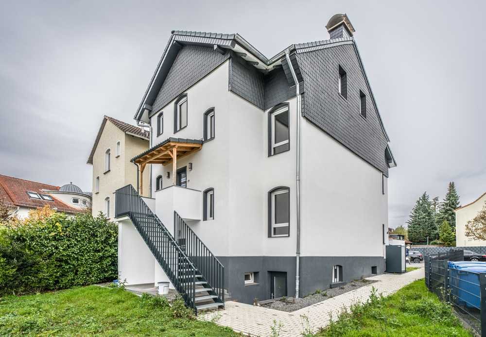 Diese hochwertig kernsanierte Wohnung erstreckt sich über das 1. Obergeschoss sowie das Dachgeschoss eines Mehrfamilienhauses, das im Jahr 2023 umfassend saniert wurde. Die Wohnung steht nun zum Erstbezug bereit und bietet modernen Wohnkomfort in ruhiger und dennoch gut angebundener Lage von Bad Soden.