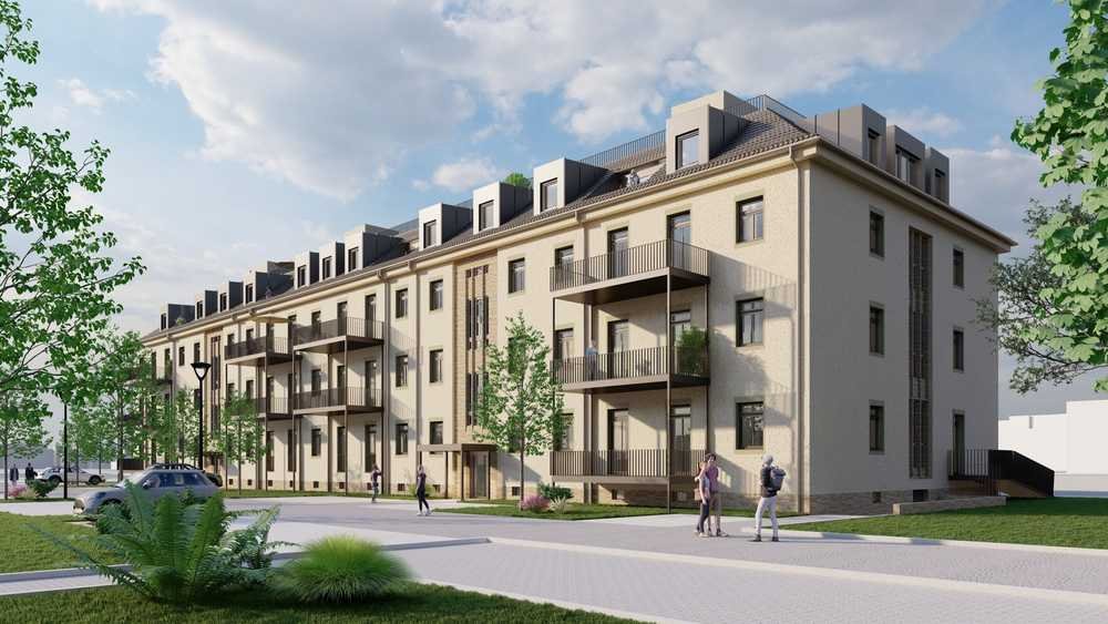 Im Herzen des innovativen Funari-Quartiers entsteht mit Gebäude 820 ein außergewöhnliches Wohnprojekt, das Geschichte und Moderne auf besondere Weise verbindet. Das ehemalige Kasernengebäude der Benjamin Franklin Kaserne wird aktuell umfassend saniert und in 27 hochwertige Wohnungen umgewandelt. Dabei bleiben die historische Fassade und die ursprüngliche Kubatur erhalten – kombiniert mit einer modernen, energieeffizienten Architektur.