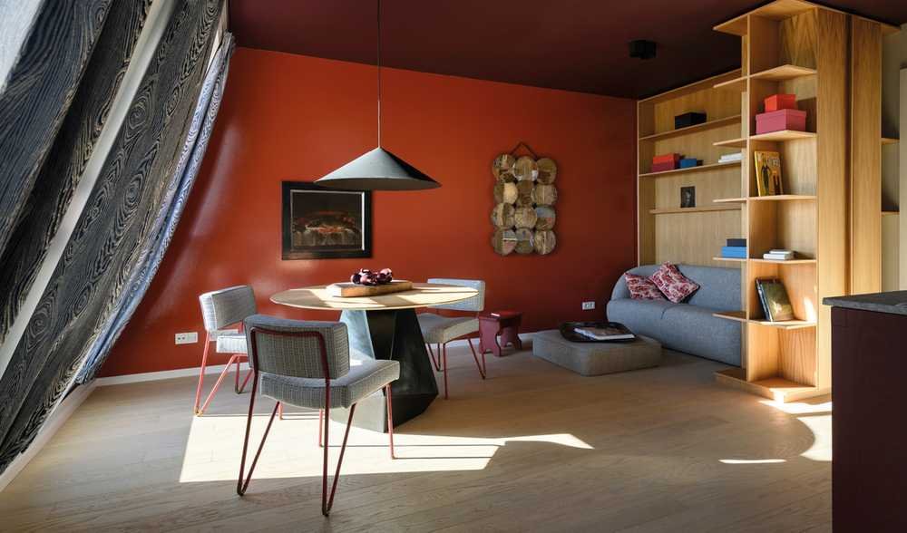 Das Rooftop Flat mit privatem Dachgarten haben die Designerinnen Melissa Antonius und Lena Schimmelbusch als „City Hayloft“ gestaltet. Ihr Konzept ist inspiriert von den Rot- und Rosttönen der umliegenden Dächer sowie den kupferfarbenen Fassadenelementen von Van B.