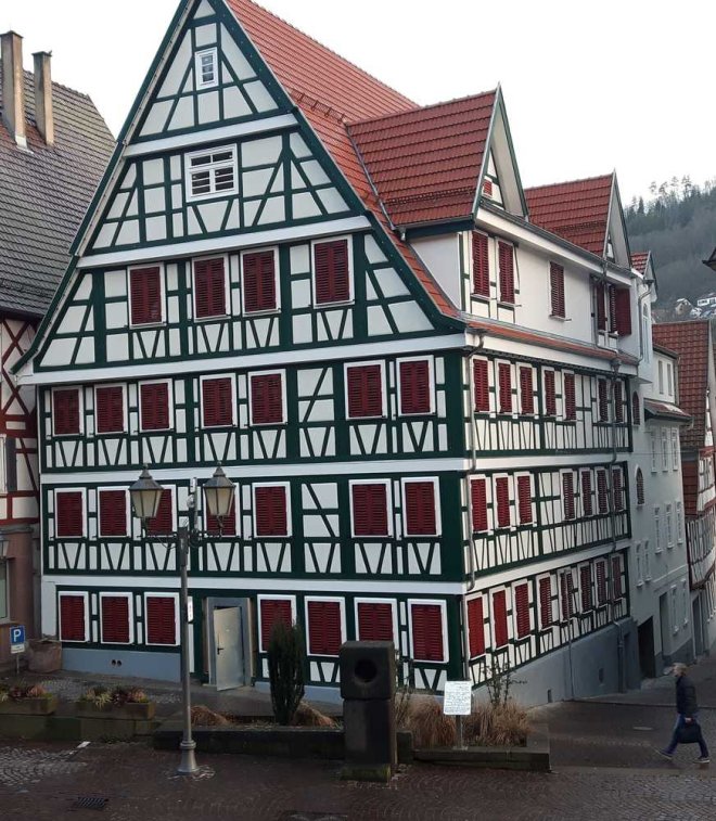 Die Wohnung befindet sich in einem komplett sanierten Fachwerkhaus direkt am Marktplatz von Calw. Hier trifft Klassik auf Moderne: die gut geschnittene Wohnung im historischen Ambiente hat Neubau-Standard.