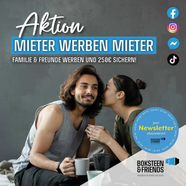 Mieter werben Mieter – 250 € für Sie und Ihre Empfehlung! Sie sind zufrieden bei uns? Dann erzählen Sie es weiter – und profitieren Sie doppelt!