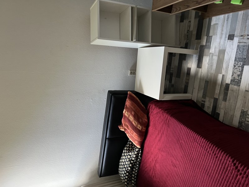 • Möbliert (teilweise): Bett, Nachttisch, Schreibtisch, Stuhl, Kleiderschrank (im Wandeinbau) und kleiner Wäscheschrank