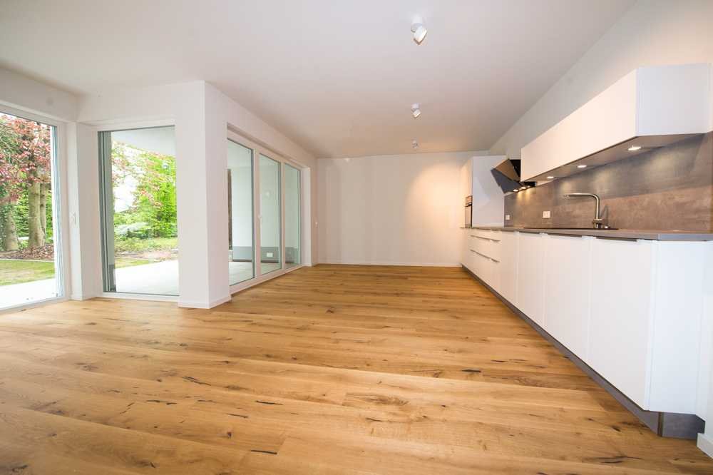 Eine rundum luxuriöse Ausstattung mit durchgehenden geölten Eichenholz-Dielenböden, die Bäder sämtlich mit wertvollen polierten Feinsteinzeug-Fliesen, großzügigen Klarglas-Duschabtrennungen und exklusiven LED-Leuchten in allen Räumen lassen keine Wünsche offen.