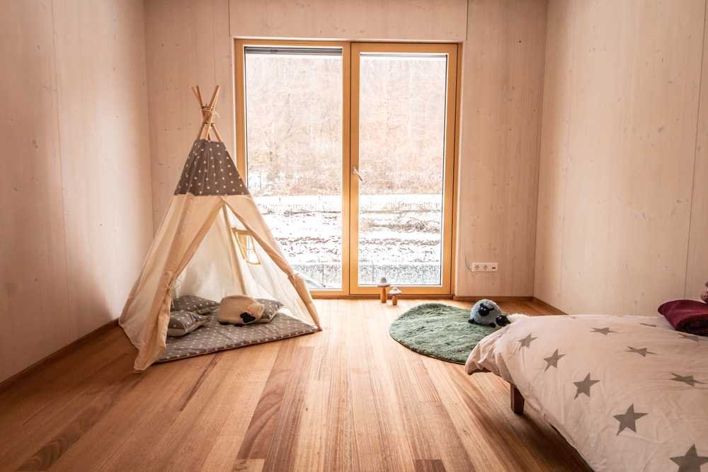Elegantes 4-Zimmer Einfamilienhaus aus Massivholz, das durch seinen großzügigen Grundriss viel Platz für alle Familienmitglieder bietet. Durch die offen gestalteten Räumen entsteht eine besonders warme Atmosphäre zwischen Küche, Wohn- und Esszimmer. Die von Naturschutzgebieten, freien Feldern und Wäldern umgebenen Häuser laden zum Erholen ein.