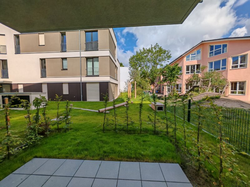 • Terrasse mit Südwest-Ausrichtung im ruhigen, begrünten Innenhof