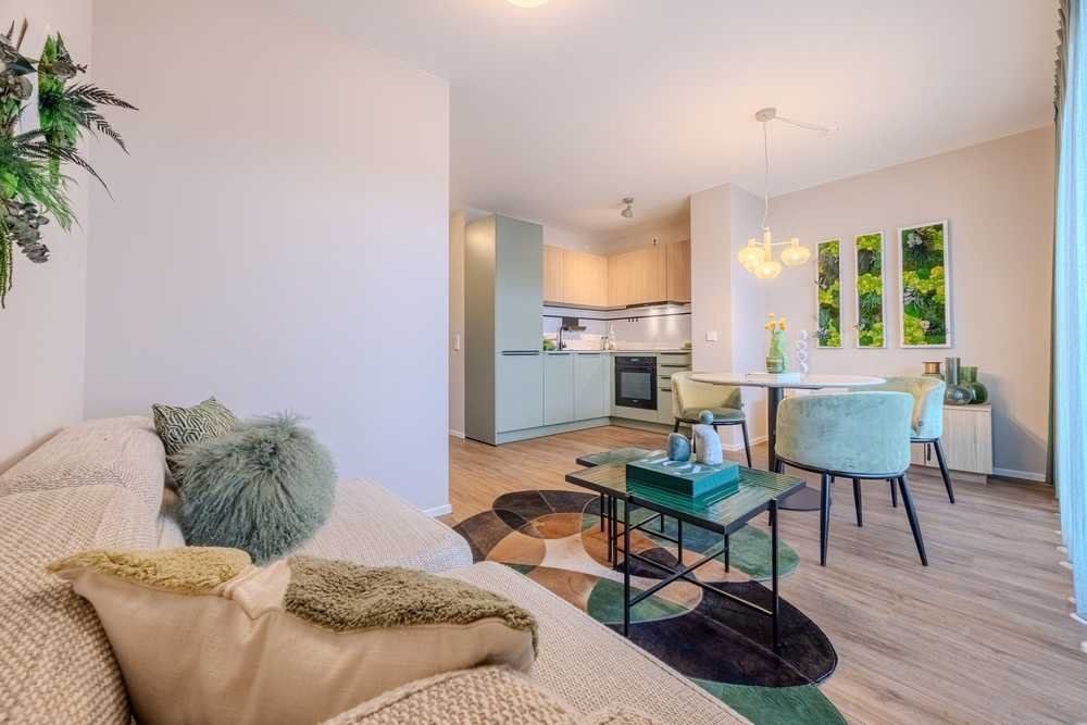 Auf der optimal genutzten Wohnfläche von 47 m² entfaltet sich ein modernes Raumkonzept mit einer hochwertigen Ausstattung. Der lichtdurchflutete Wohn-/Essbereich mit offener Einbauküche bildet das Herzstück der Wohnung und schafft eine einladende Atmosphäre zum Wohlfühlen.