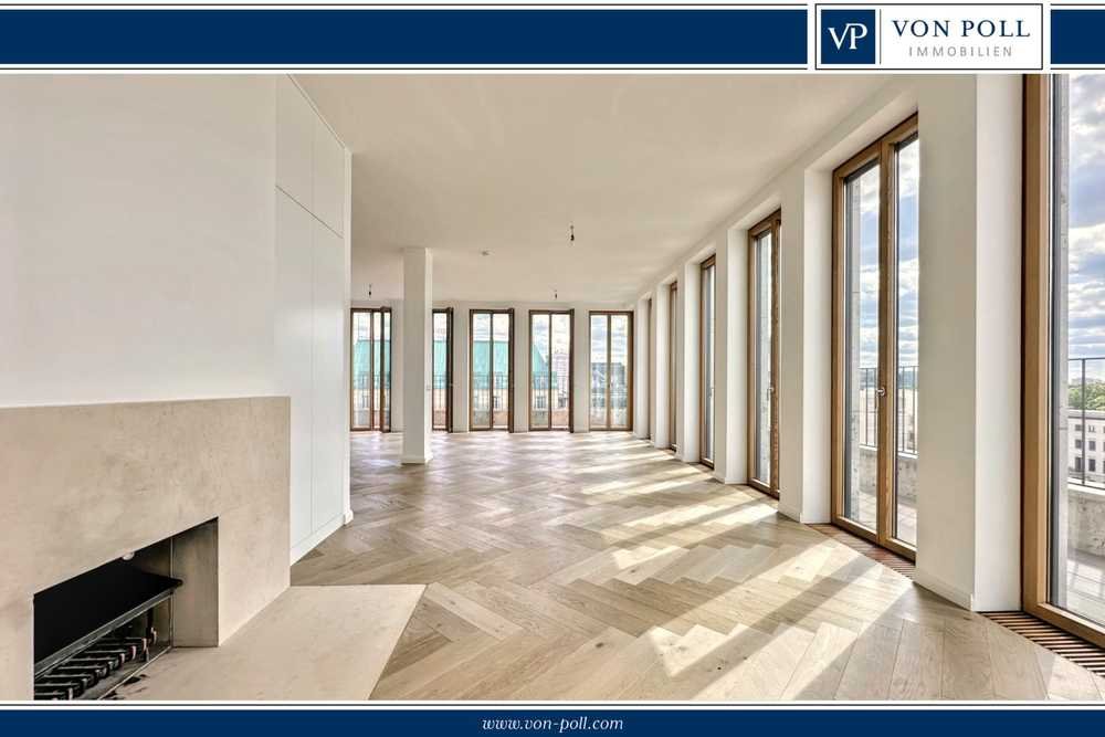 Ein herausragendes Highlight ist die beeindruckende Raumhöhe von ca. sechs Metern sowie die umlaufende Terrasse, die einen atemberaubenden Blick vom Brandenburger Tor bis hin zum Tiergarten ermöglicht. Die Wohnung verfügt über insgesamt drei Schlafzimmer: Zwei befinden sich auf der Hauptwohnebene, während das dritte Schlafzimmer mit Ankleide auf der Galerieebene viel Privatsphäre bietet.