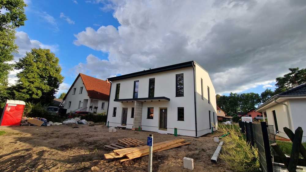 Das Doppelhaus wird auf einem 967m² großen Grundstück errichtet. Es verfügt über 3 Schlafzimmer (alle im OG), ein helles großes Wohnzimmer, offene Küche (ohne EBK), Hauswirtschaftsraum, sowie 1 großes Bad mit Dusche und Badewanne im OG und ein Gäste-WC im EG.