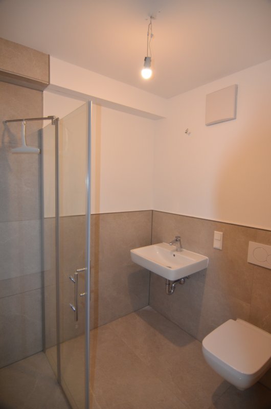 Das stilvolle Badezimmer ist mit einer ebenerdigen Dusche und einer modernen Duschkabine ausgestattet. Durch ihre moderne Einbauküche, die praktische Waschküche mit Waschmaschinenanschluss sowie den eigenen Tiefgaragenstellplatz und Keller – alle bequem mit dem Aufzug erreichbar – bietet die Wohnung ein hohes Maß an Wohnkomfort.