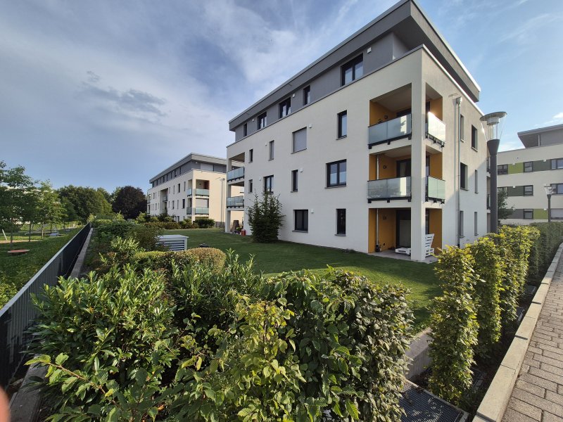 Einbauküche, Fußbodenheizung, Terrasse mit eigenem Garten 90m², Tiefgaragenstellplatz, Keller, Fahrradraum, Waschraum