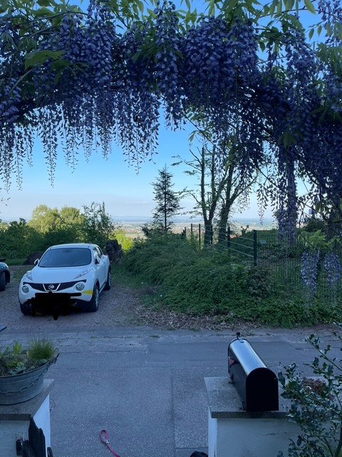 Wir vermieten ein Einfamilienhaus in ruhiger Lage mit traumhaftem Blick in die Rheinebene, 6 Zimmer, davon 2 Schlafzimmer mit Duschbad, Badezimmer, Hof, Doppelgarage, Terrasse, Einbauküche, Keller, Sommerküche, Garten und viel Raum zur Entfaltung