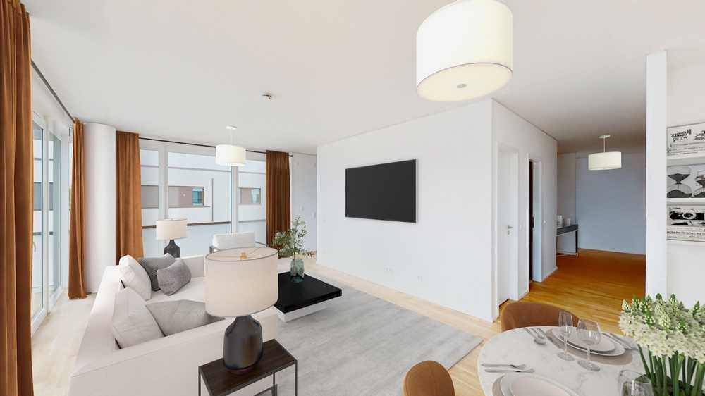 Den zukünftigen Bewohnern stehen dabei verschiedene Grundrisse in den vier verschiedenen Häusertypen zur Auswahl. Darunter befinden sich funktionale Apartments, großzügig geschnittene Wohnungen in den Stadtvillen und Maisonettehäusern sowie Reihenhäuser. Von 2 bis 5 Zimmern und Größen von ca. 48 m² bis 153 m² bieten die Einheiten für jedes Lebensmodell ein Zuhause. Jede Wohnung verfügt über einen schönen Balkon oder Terrasse. Die durchdachte Anordnung der Räume ermöglicht eine optimale Nutzung des Wohnraums, wobei offene Küchen harmonisch in die Wohnbereiche integriert sind. Durchdachte Stauraumlösungen, hochwertige Materialien und moderne Ausstattungsdetails runden das Gesamtbild ab.