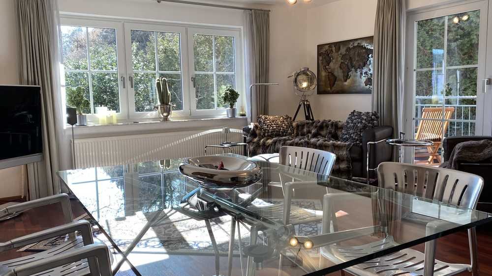 Die hochwertige Ausstattung umfasst Designer-Möbel von Cassina, Thonet und ClassiCon, zwei Loewe LED-HD-Fernseher, ein BOSE Surround-System sowie High-Speed WLAN mit iPad. Die moderne Bulthaup-Küche ist mit Mikrowelle, WMF Kaffeevollautomat und Nespresso Business Bar ausgestattet.