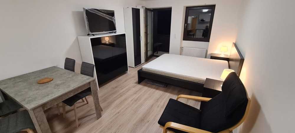 Erleben Sie modernen Wohnkomfort in dieser frisch renovierten und vollmöblierten 40 m² großen Wohnung, die keine Wünsche offenlässt. Das Wohnschlafzimmer mit offener Küche ist komplett neu eingerichtet und bietet eine einladende Atmosphäre.