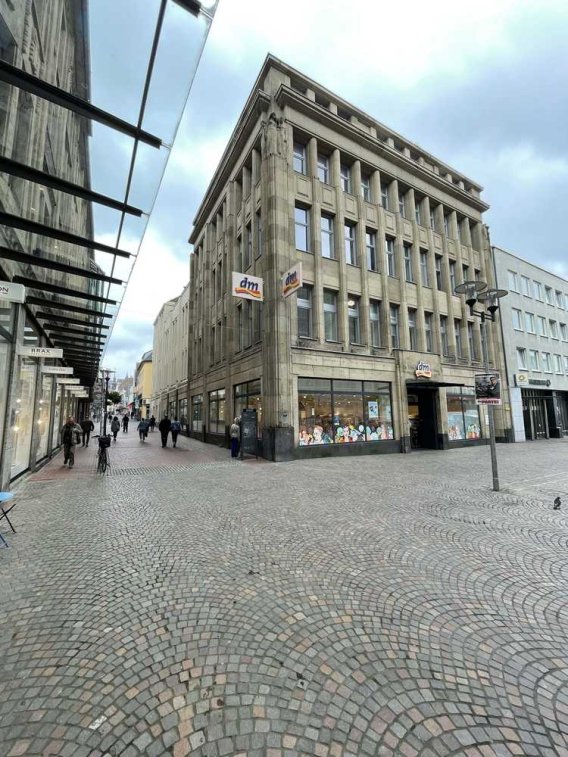 Das Wohn- und Geschäftshaus am Markt 1 befindet sich in einer zentralen Lage von Recklinghausen und präsentiert sich als gepflegtes und ruhiges Objekt. Im Erdgeschoss ist der bekannte Drogeriemarkt dm ansässig, in der ersten Etage befindet sich ein etabliertes Personaldienstleistungsunternehmen.