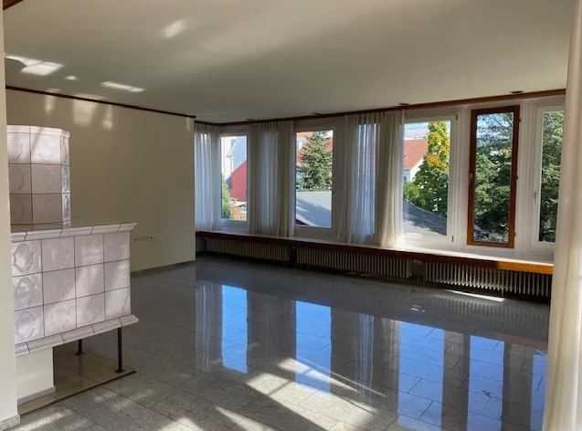 Der mit einer großen Fensterfassade ausgestattete, helle Wohn- und Essbereich mit zusätzlichem Öl-Kachelofen, ist der Mittelpunkt der freundlichen, großzügig geschnittenen Wohnung. Von hier aus betritt man auch die teilweise überdachte, große Südterrasse.