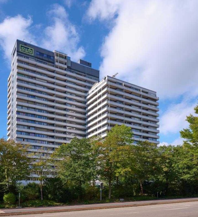 Ruhiges und gepflegtes Wohnhochhaus in der City Barrierearme Wohnungen, Zugangssituation sogar barrierefrei 4 Aufzüge vorhanden Loggien mit herrlichen Ausblicken über die Stadt Gemeinschaftsraum Waschküchen Freizeitanlage (Schwimmbad, Sauna, Solarium) Concierge mit vielen Services Parkmöglichkeiten in Tiefgarage